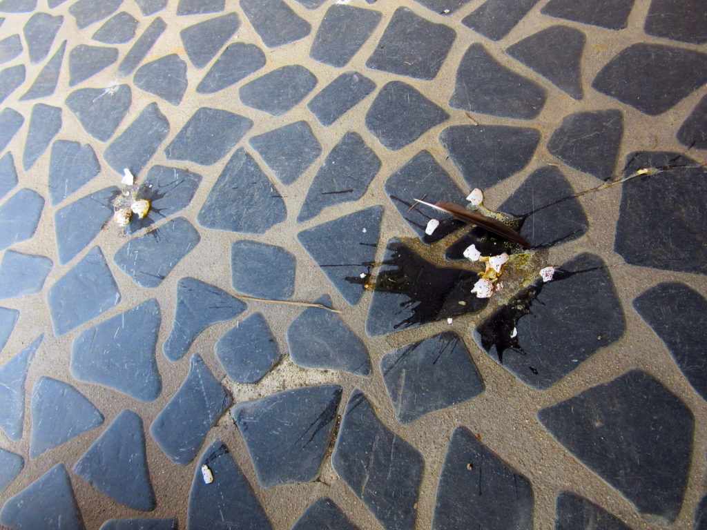 すぐそばの天井にあるツバメの巣が、床に落ちていた。