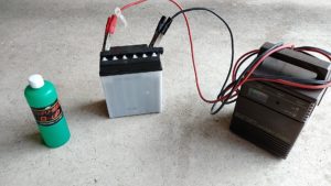 大雪時、3ヶ月フル稼働した小型除雪機のバッテリーの液量って、こんなに激減。このまま放っておくと、次期冬シーズンはほぼ使えません。