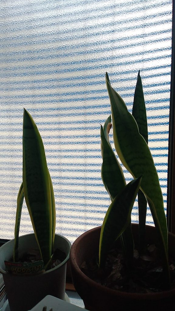 温かい季節時は、横からタケノコのようにニョキニョキ新しいサンセベリア達が生えてきます。増えるので、年に1回は株分けし、新しいサンベリアのみ新しい鉢に植え替えして育てています。いえば今育っているサンベリアは20代目のもの。