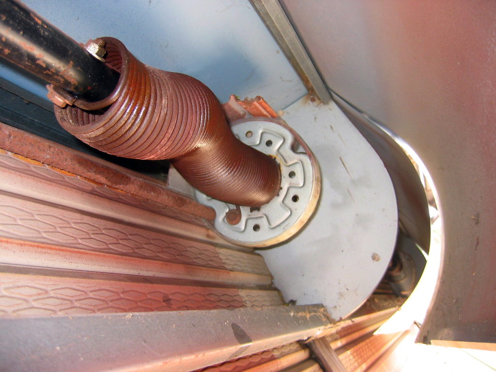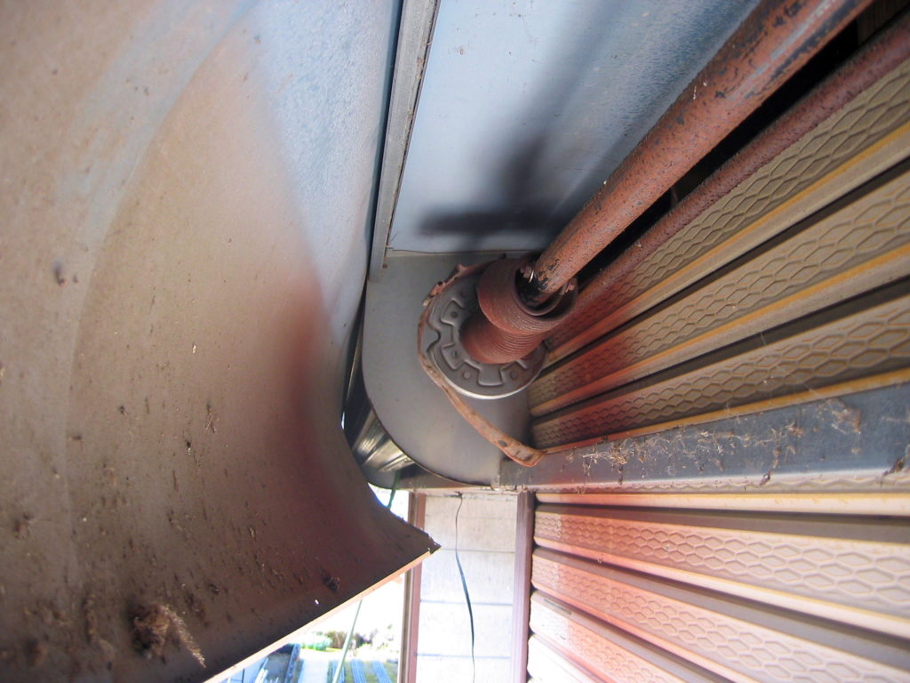 よく見ると、錆びた巻取りシャフトとよじれた錆々のスプリングの一部が接触してますよね。
