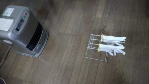 降雪中の除雪作業をすると、いつも雪で手袋が濡れちゃう。また使うから早く乾燥させなきゃ